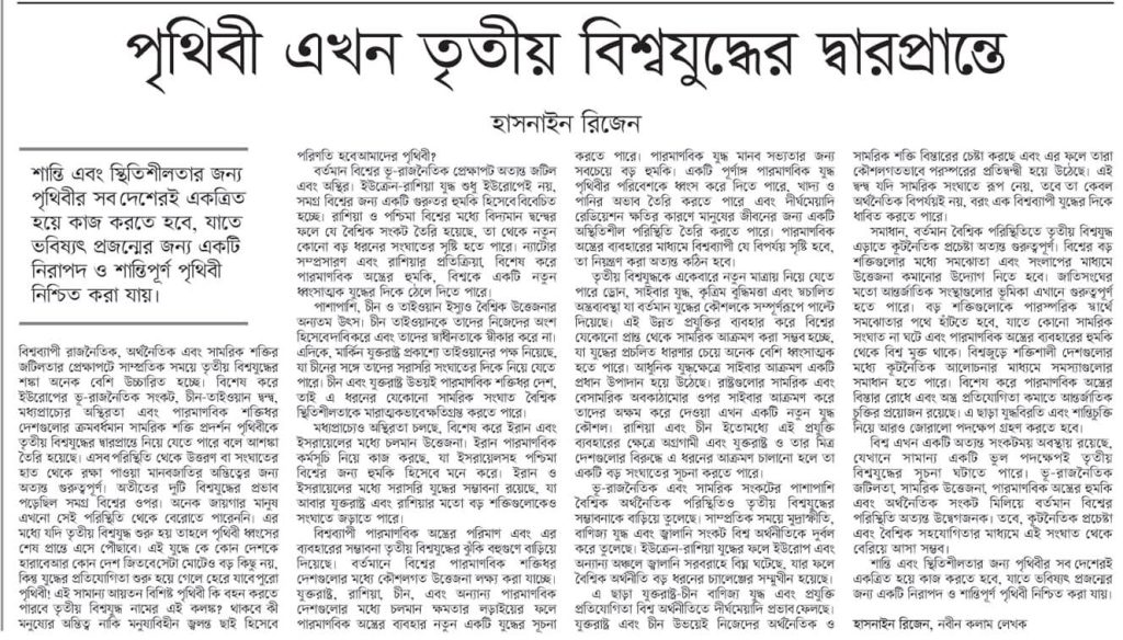 পৃথিবী এখন তৃতীয় বিশ্বযুদ্ধের দ্বারপ্রান্তে।