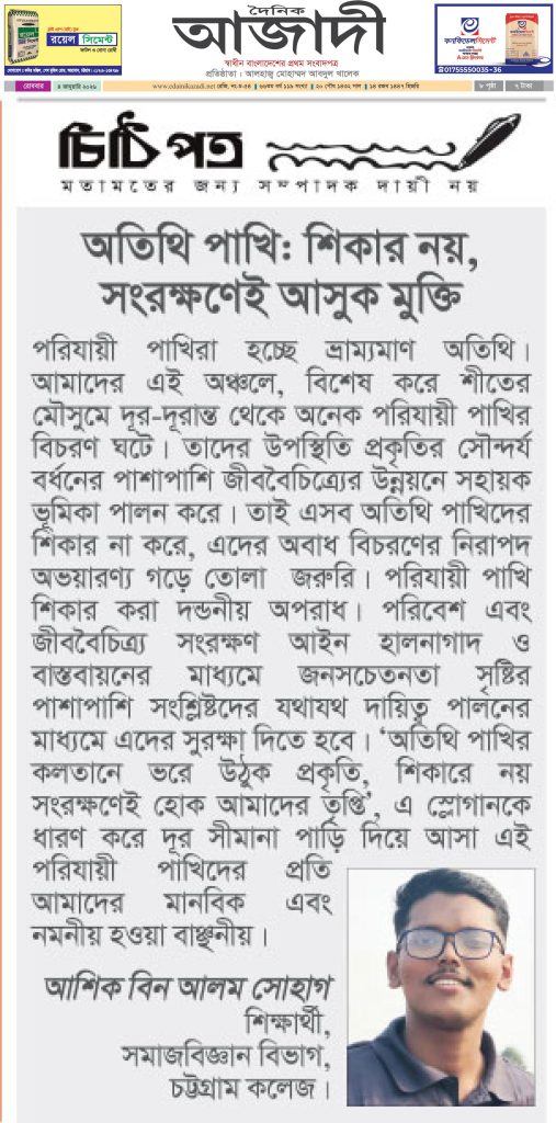 এই লেখাটি ৪ জানুয়ারি ২০২৬ তারিখে দৈনিক আজাদী পত্রিকায় প্রকাশিত।