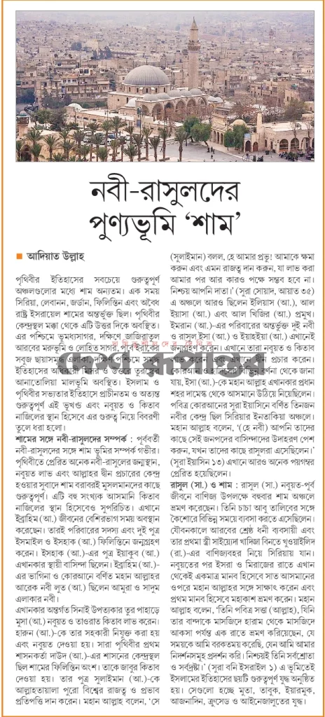 নবী – রাসূলদের পূণ্যভূমি ‘শাম’
