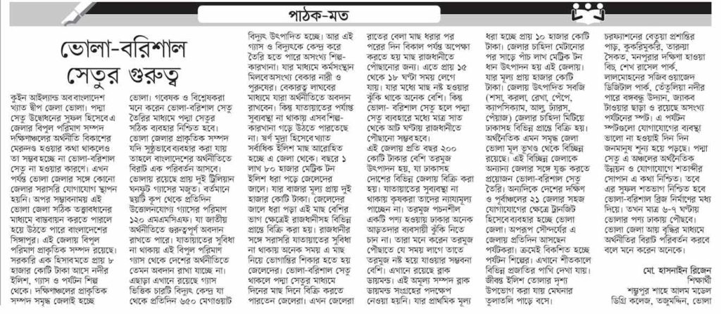 ভোলা বরিশাল সেতুর গুরুত্ব।