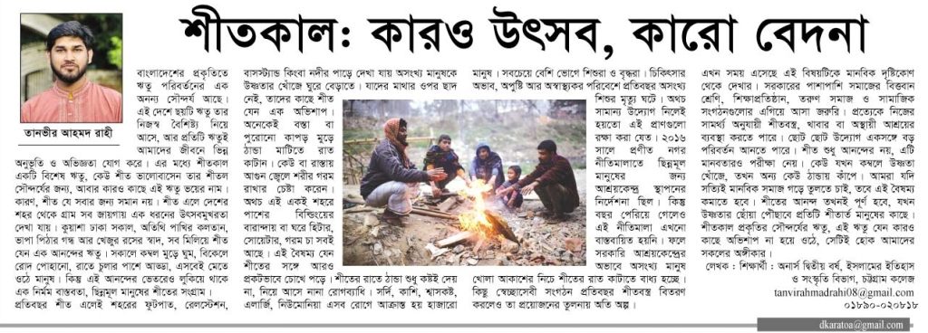 শীতকাল: কারও উৎসব, কারো বেদনা