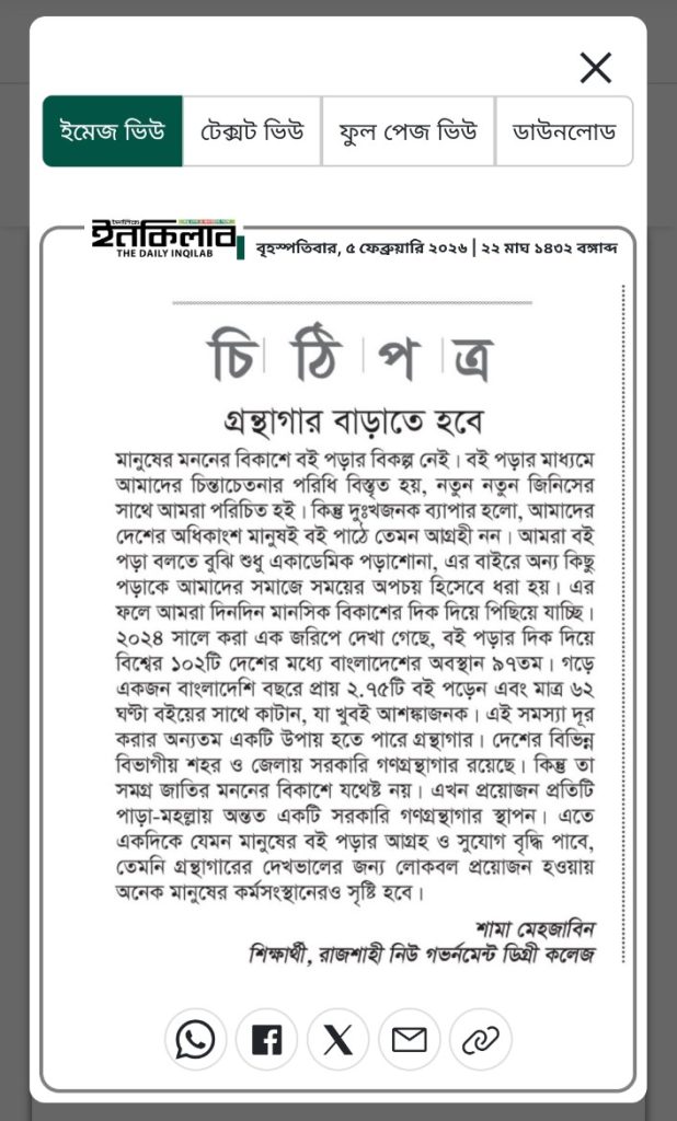 এই লেখাটি ৫ ফেব্রুয়ারি ২০২৬ তারিখে দৈনিক ইনকিলাব পত্রিকায় প্রকাশিত।