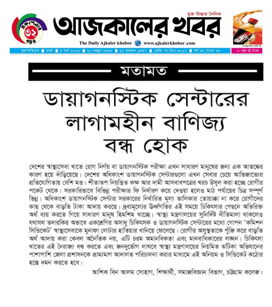 এই লেখাটি ৫ মার্চ ২০২৬ তারিখে আজকালের খবর পত্রিকায় প্রকাশিত।