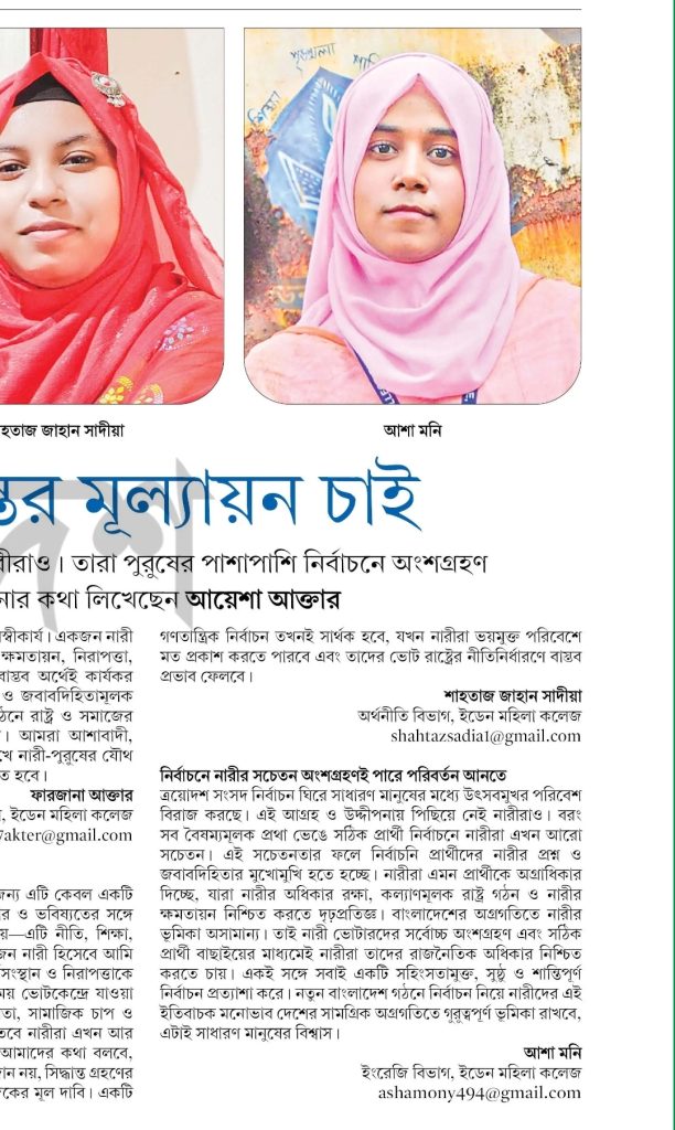 - “নির্বাচনে নারীর সচেতন অংশগ্রহণই পারে পরিবর্তন আনতে”