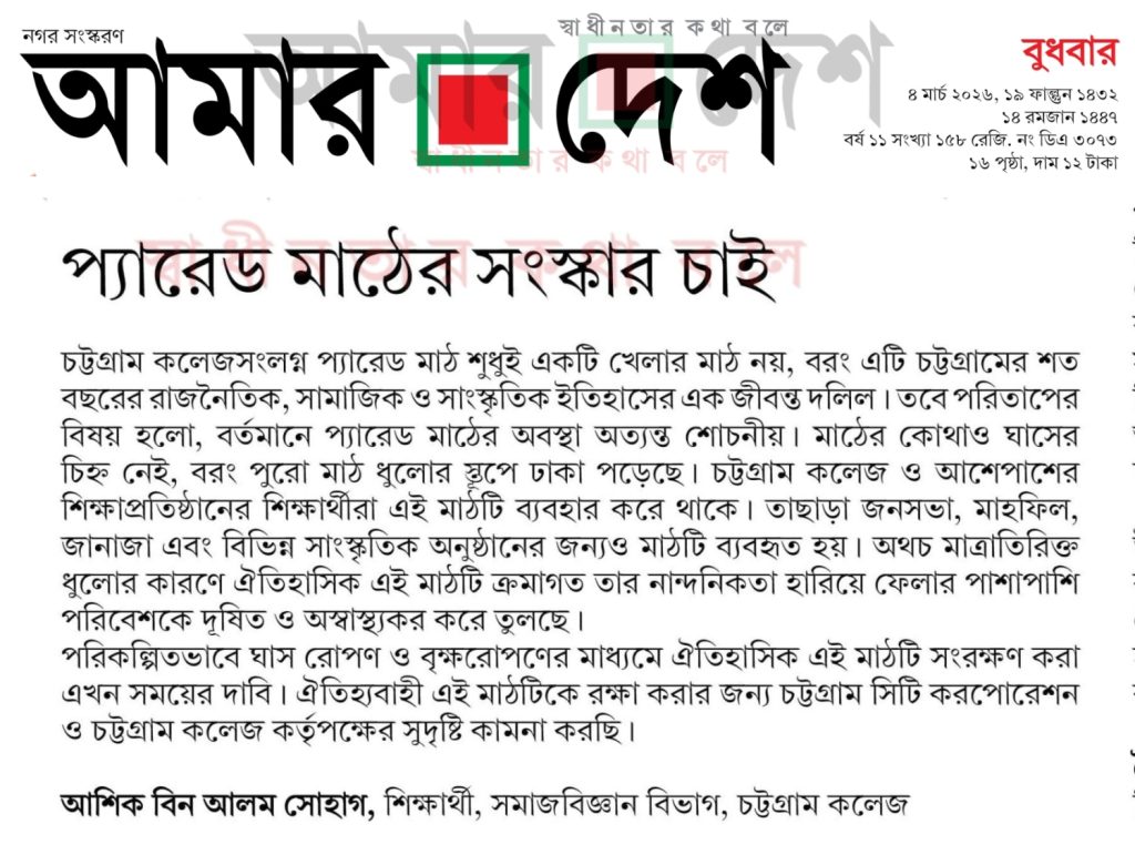 এই লেখাটি ৪ মার্চ ২০২৬ তারিখে আমার দেশ পত্রিকায় প্রকাশিত।