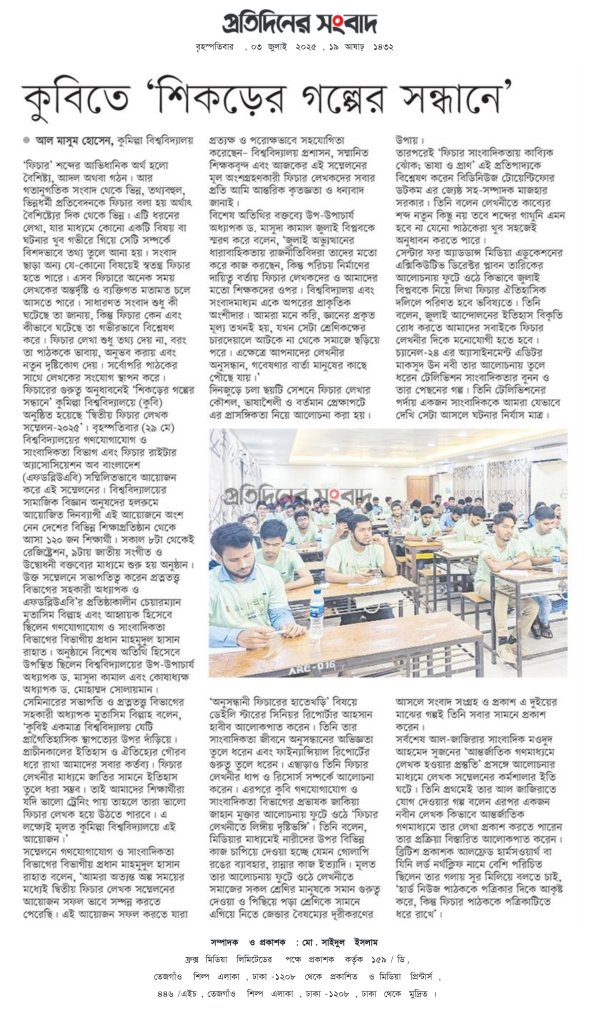 ‘শেকড়ের গল্পের সন্ধানে’ কুবি’তে ফিচার লেখক সম্মেলন