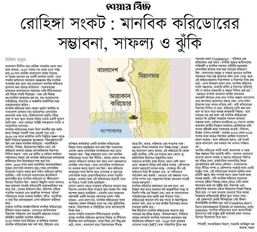 রোহিঙ্গা সংকট: মানবিক করিডোরেরস ম্ভাবনা, সাফল্য ও ঝুঁকি