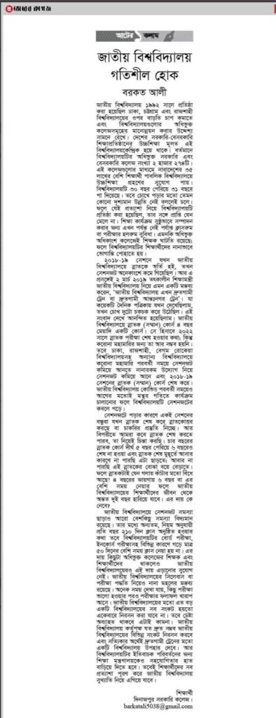 এই লেখাটি ২৬ নভেম্বর ২০২৩ তারিখে দৈনিক ভোরের কাগজ পত্রিকায় প্রকাশিত।