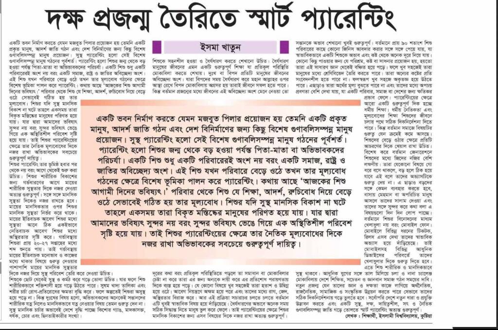 হোম / অনুপ্রেরণা ও মোটিভেশন / নিবন্ধদক্ষ প্রজন্ম তৈরিতে স্মার্ট প্যারেন্টিং মোছাঃ ইসমা খাতুন , ইসলামী বিশ্ববিদ্যালয়, কুষ্টিয়া প্রকাশ: ১০ জুলাই ২০২৫ পাঠ: ৫১ বার প্যারেন্টিংলেখক: কার্যনির্বাহী সদস্য, ইসলামী বিশ্ববিদ্যালয়।এই লেখাটি ১০ জুলাই ২০২৫ তারিখে বাংলাদেশের আলো পত্রিকায় প্রকাশিত। লেখাটি শেয়ার করুন: