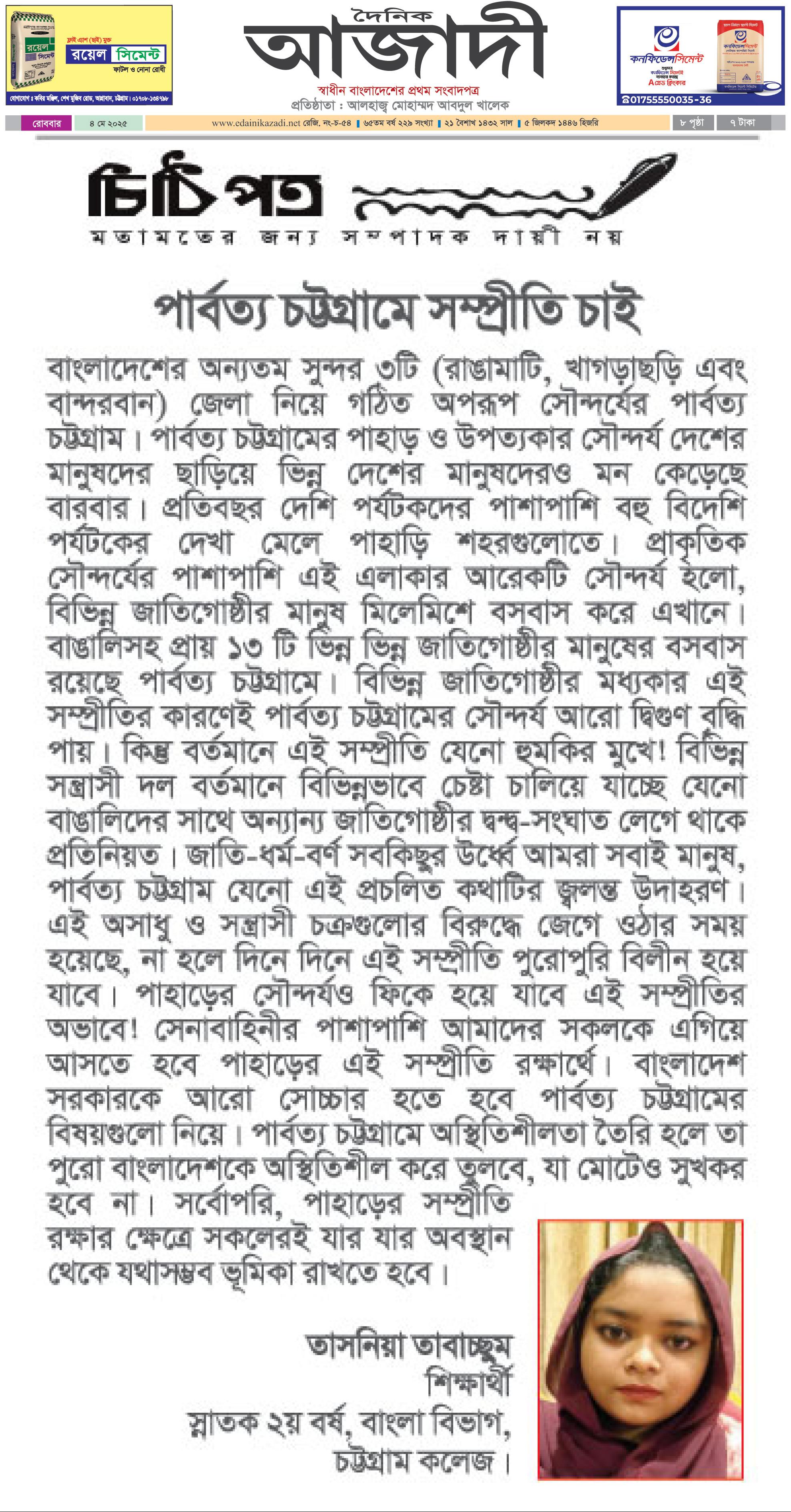 পার্বত্য চট্টগ্রামে সম্প্রীতি চাই