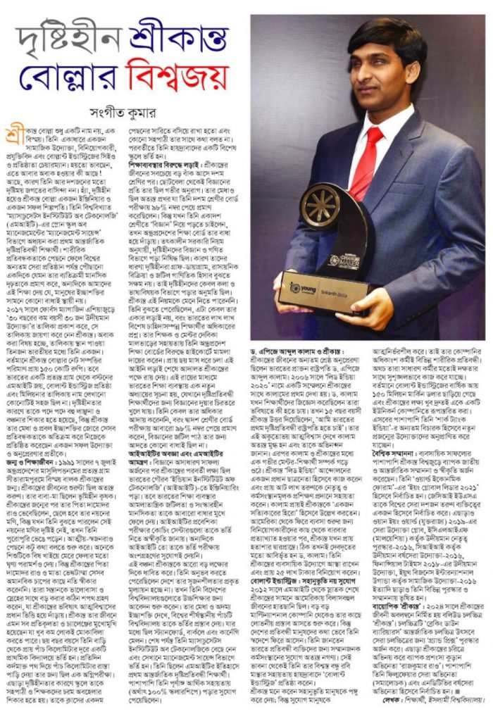 দৃষ্টিহীন শ্রীকান্ত বোল্লার বিশ্বজয়