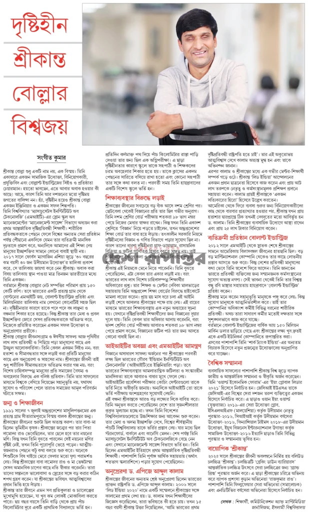 দৃষ্টিহীন শ্রীকান্ত বোল্লার বিশ্বজয়