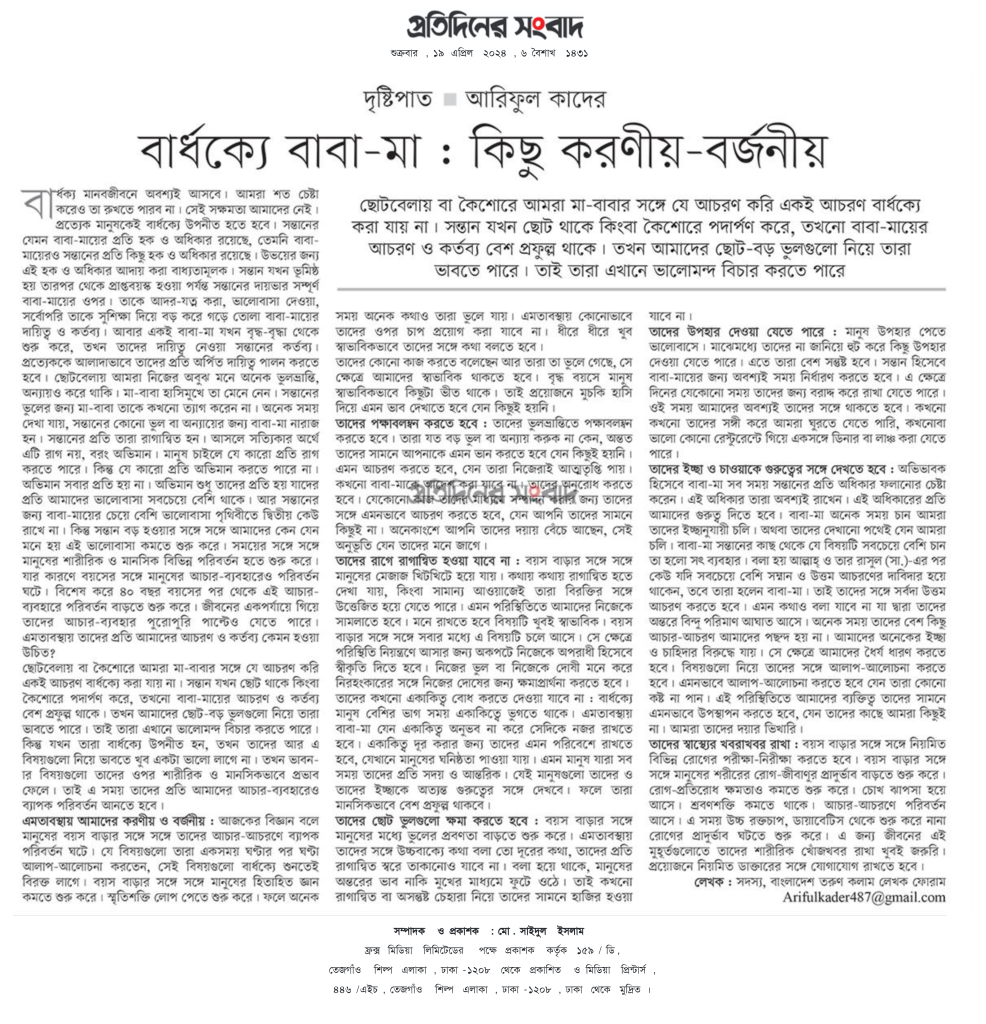 বার্ধক্যে পিতা-মাতা: কিছু করণীয়-বর্জনীয়