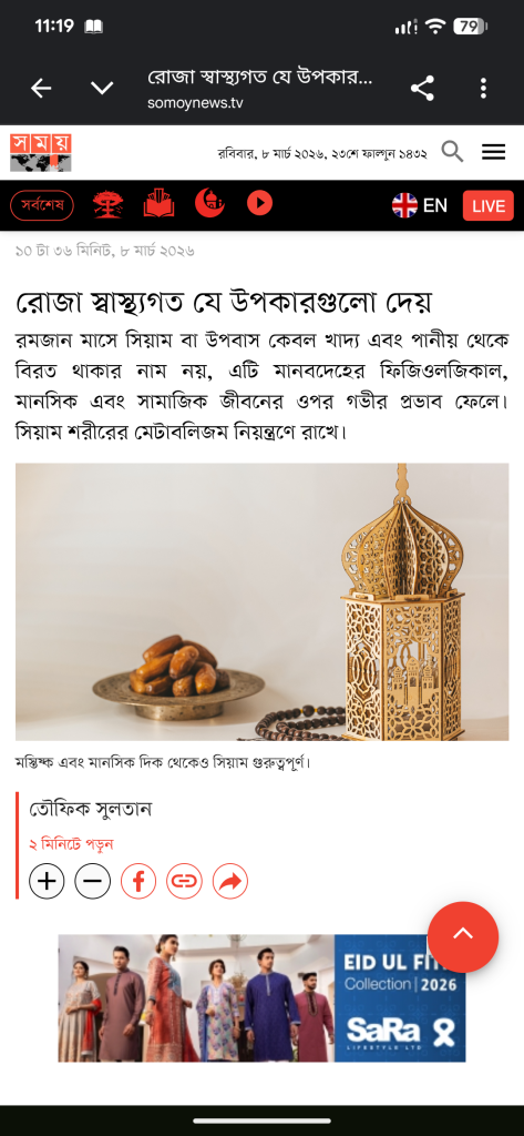 এই লেখাটি ৮ মার্চ ২০২৬ তারিখে SOMOYNEWS.TV পত্রিকায় প্রকাশিত।