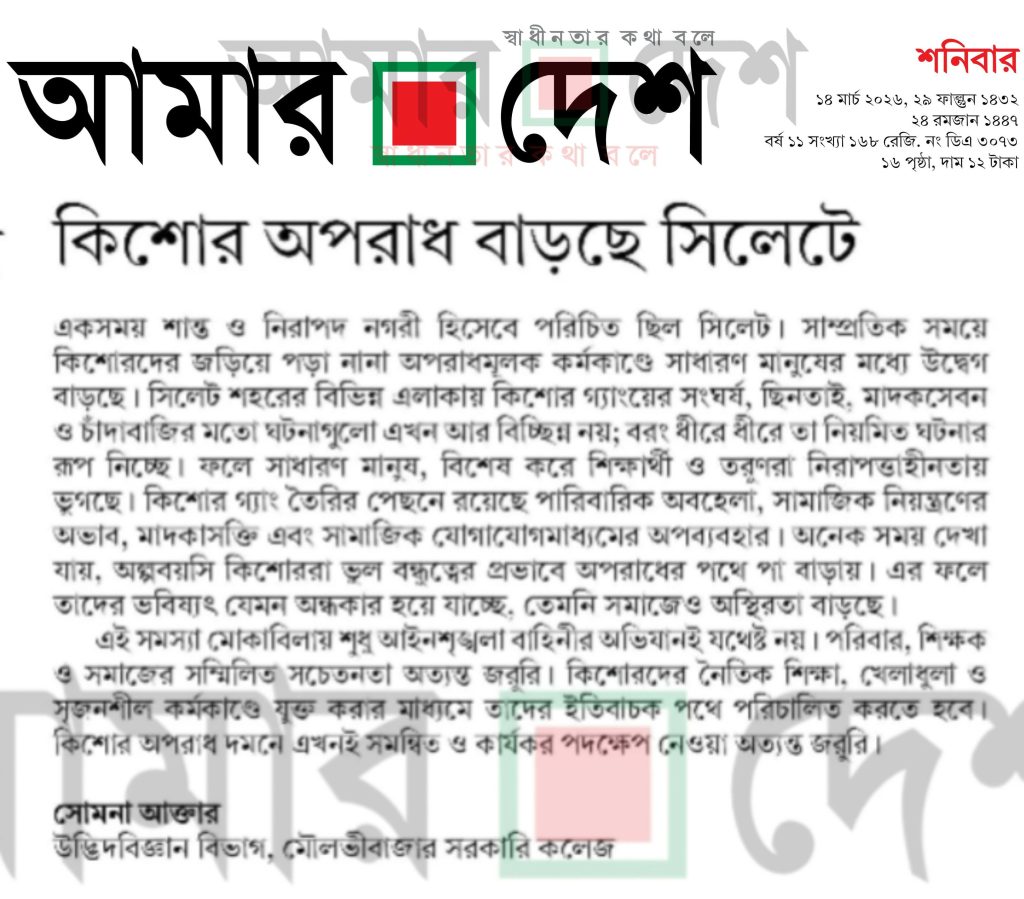 এই লেখাটি ১৪ মার্চ ২০২৬ তারিখে আমার দেশ পত্রিকায় প্রকাশিত।