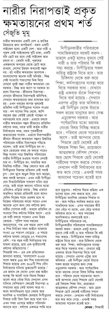 নারীর নিরাপত্তাই প্রকৃত ক্ষমতায়নের প্রথম শর্ত।