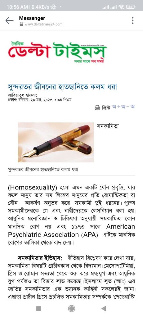 এই লেখাটি ২৩ মার্চ ২০২৫ তারিখে দৈনিক ডেল্টা টাইমস পত্রিকায় প্রকাশিত।