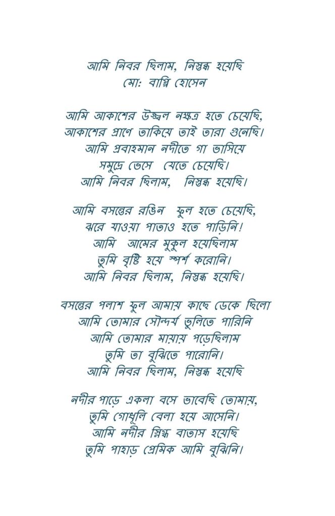 আমি নিবর ছিলাম, নিস্তব্ধ হয়েছি