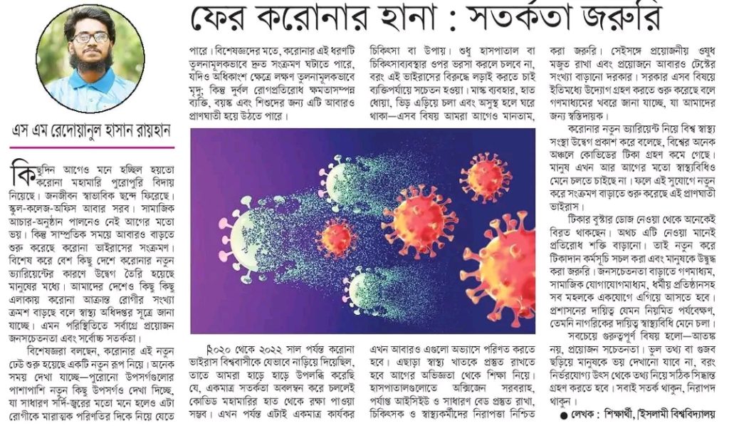 এই লেখাটি ১৩ জুন ২০২৫ তারিখে দৈনিক ইত্তেফাক পত্রিকায় প্রকাশিত।