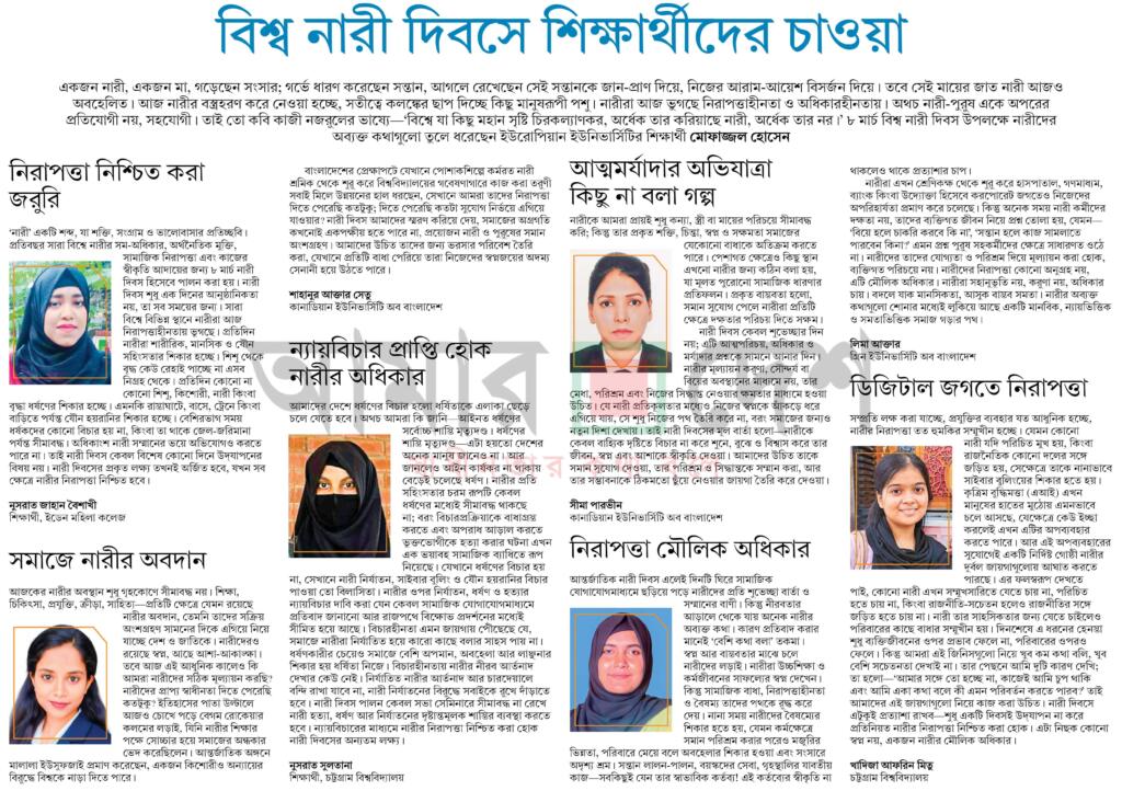 বিশ্ব নারী দিবসে শিক্ষার্থীদের চাওয়া