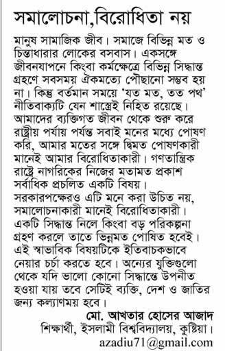 সমালোচনা মানেই বিরোধিতা নয়