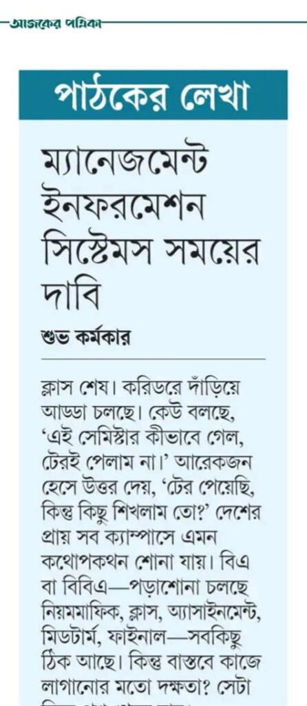 ম্যানেজমেন্ট ইনফরমেশন সিস্টেমস্ বিভাগ সময়ের দাবি