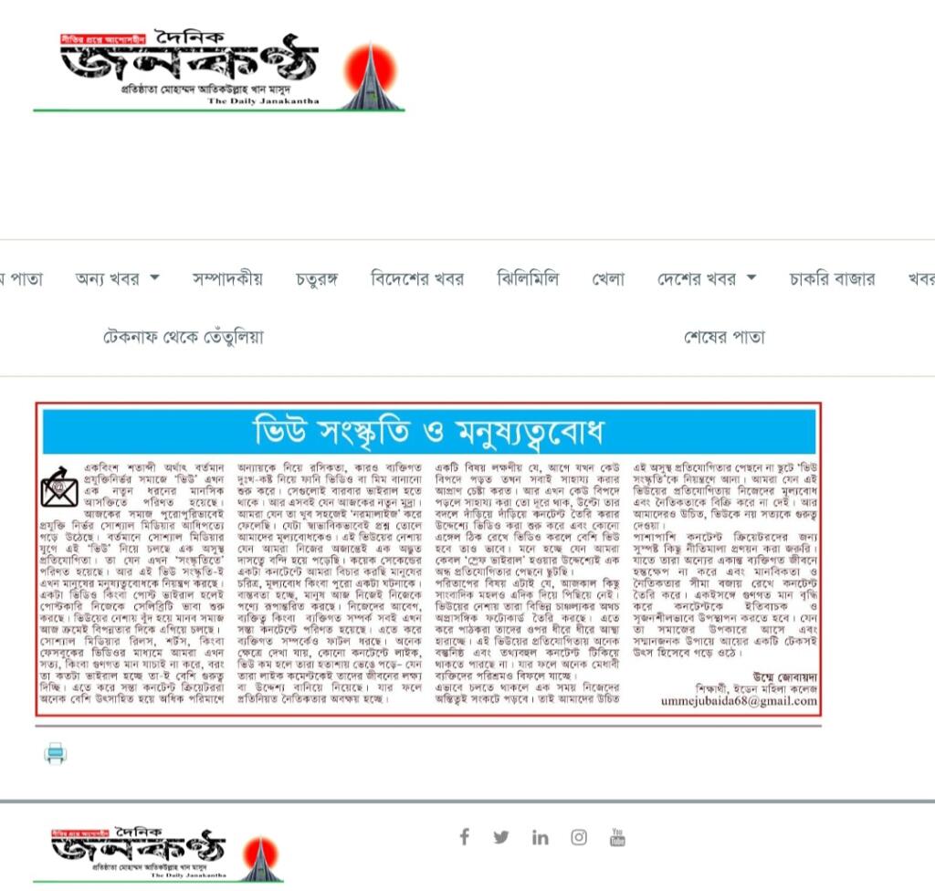 এই লেখাটি ২৮ ফেব্রুয়ারি ২০২৬ তারিখে দৈনিক জনকণ্ঠ পত্রিকায় প্রকাশিত।