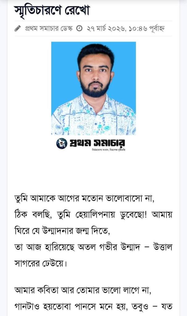 এই লেখাটি ২৭ মার্চ ২০২৬ তারিখে প্রথম সমাচার পত্রিকায় প্রকাশিত।
