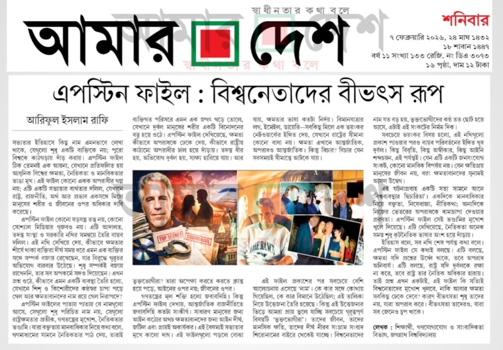এই লেখাটি ৭ ফেব্রুয়ারি ২০২৬ তারিখে দৈনিক আমার দেশ পত্রিকায় প্রকাশিত।