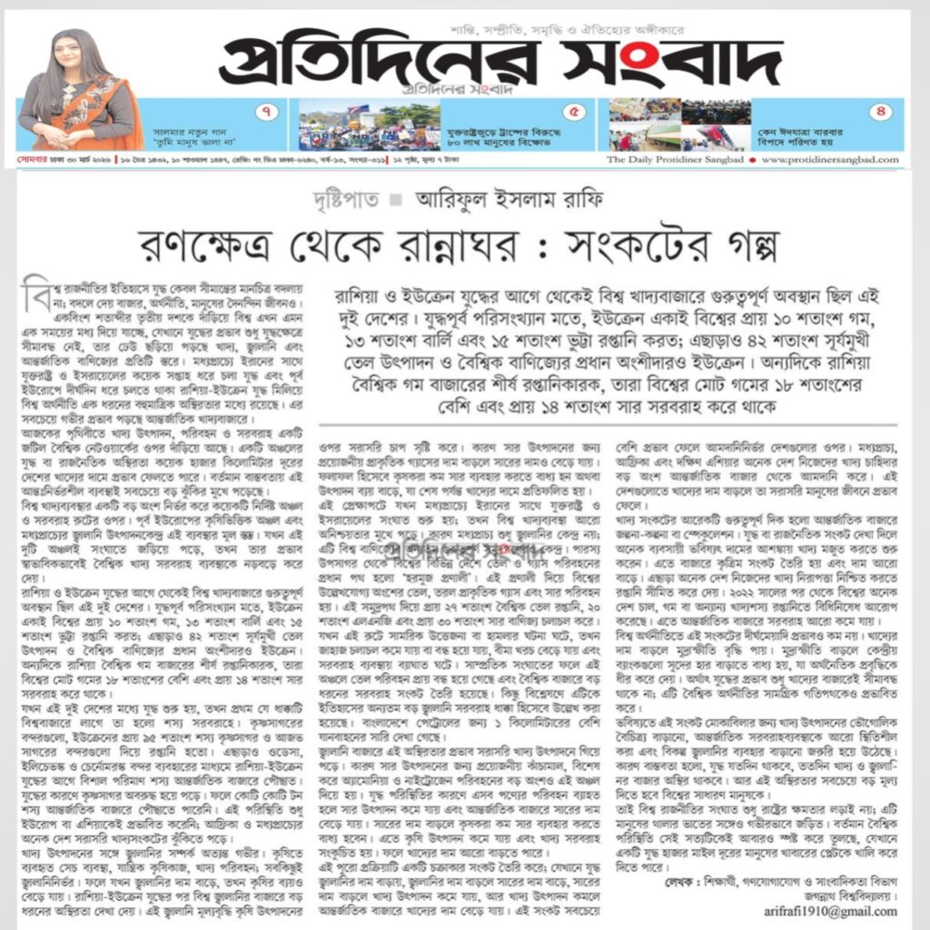 তাই বিশ্ব রাজনীতির সংঘাত শুধু রাষ্ট্রের ক্ষমতার লড়াই নয়; এটি মানুষের থালার ভাতের সঙ্গেও গভীরভাবে জড়িত। বর্তমান বৈশ্বিক পরিস্থিতি সেই সত্যটিকেই আবারও স্পষ্ট করে তুলছে, যেখানে একটি যুদ্ধ হাজার মাইল দূরের মানুষের খাবারের প্লেটকে খালি করে দিতে পারে।