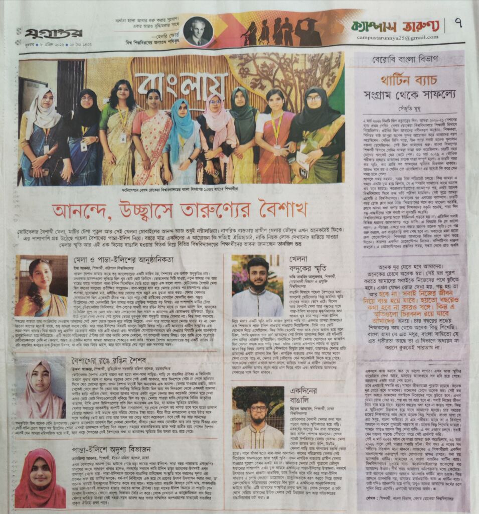 ২রা মার্চ ২০২২ দিনটি ছিল নতুনত্বের দিন। আমরা ২০২০-২১ সেশনের ব্যাচ প্রথম সেদিন, বেগম রোকেয়া বিশ্ববিদ্যালয়ে শিক্ষার্থী হিসেবে গিয়েছিলাম। ওইদিন ছিল আমাদের নবীনবরণ অনুষ্ঠান। শিক্ষকরা, সিনিয়র ভাই আপুরা অনেক সুন্দর আয়োজন করে আমাদের বরণ করেছিলেন। সেদিন ভিসি স্যার, ডিন স্যার সবাই অনেক মুল্যবান বক্তব্য রেখেছিলেন। সেই ছিল আমাদের শুরু। বাংলা বিভাগের শিক্ষার্থী হিসেবে সেদিন আমরা যাত্রা শুরু করেছিলাম। চারটি বছর চোখের পলকেই যেন কেটে গেলো। ৩১শে মার্চ ২০২৬ এ মৌখিক পরীক্ষার মাধ্যমে আমাদের স্নাতক যাত্রা সম্পূর্ণ হলো। এই চারটি বছর কত স্মৃতি, কত প্রাপ্তি সব আমাদের স্মৃতিতে চিরকাল থাকবে। আজও মনে হয় এই সেদিন তো এসেছিলাম! এর মধ্যেই কি করে যেন সময় চলে গেলো! আসলে সময় বহমান, সময় নিজ গতিতেই চলছে। কিন্তু আমরা এই সময়ে এতটা মুগ্ধ হয়ে ছিলাম, যে এই সময়টা আমাদের কাছে অনেক কম মনে হয়েছে। করোনা ভাইরাসের প্রকোপের পর, প্রথম অনেক গুলো বিশ্ববিদ্যালয় মিলে গুচ্ছ ভর্তি পরীক্ষা হয়েছিল। সেই সূত্রে আমরা এসেছি এই বিশ্ববিদ্যালয়ে। আমাদের ৭৫ একরের ক্যাম্পাস। চারটি বছর রোজ ক্লাস করা নিয়ে সি আর দের সাথে কত ঝামেলা করেছি, ক্লাসে অযথা কথা বলার জন্য শিক্ষকদের বকুনি শুনেছি, সারাদিন বন্ধু বান্ধবীদের সাথে কতই না খুনশুটি করেছি। বিশ্ববিদ্যালয়ে স্কুলের মতো ইউনিফর্ম পড়তে হয় না। প্রতিদিন সবাই বিভিন্ন ধরনের জামা কাপড় পড়ে আসি৷ এই বিষয়টা কি যে ভালো লাগে। এই পচাত্তর একরে চার বছরে অনেক অনেক স্মৃতি। সে গল্প শুরু করলে, এত তাড়াতাড়ি বলা শেষ হবে না। সবচেয়ে মজা হতো গ্রুপ প্রেজেন্টেশনে। শিক্ষকরা আমাদের বিভিন্ন গ্রুপে ভাগ করে দিতেন। তারপর একদিন প্রেজেন্টেশন নিতেন। কম্পিটিশন দারুণ জমতো। এই প্রেজেন্টেশন এর প্রিপারেশন এর সময়, সন্ধ্যা থেকে রাত অবধি একসাথে কাজ করতে কত যে ভালো লাগত! এসব আজ স্মৃতির ডায়েরিতে লেখা আছে, হৃদয়ের এলবামে সব ছবি রয়ে গেছে। আমাদের একটা যাত্রা শেষ হলো। তবে এখানেই সমাপ্তি নয়। সামনে জীবন যাত্রা পুরোটা রয়েছে। অনেক দূর যেতে হবে আমাদের। অনেকের চোখে অনেক স্বপ্ন। সেই স্বপ্ন পুরোন করতে আমাদের সবাইকে নিজেদের পথে ছুটতে হবে। এখন যেমন রোজ দেখা হয়, গল্প হয় তা আর হবে না৷ সবাই নিজের জীবন নিয়ে ব্যস্ত হয়ে যাবে। হয়ত বছরেও কথা হবে না কারো সাথে। কিন্তু এই স্মৃতিগুলো চিরকাল রয়ে যাবে আমাদের হৃদয়ে। চার বছরের শ্রদ্ধেয় শিক্ষকদের কাছ থেকে অনেক কিছু শিখেছি। বাংলা ভাষা যে এত মধুর, বাংলা সাহিত্যে যে এত গভীরতা আছে তা এই বিভাগে অধ্যয়ন না করলে বুঝতেই পারতাম না। অনেক কিছু শিখেছি আমরা। সামনে আরও অনেক কিছু শেখা বাকি। এই পথ এভাবে চলবে। সবাই যেন তাদের গন্তব্যে পৌঁছাতে পারে সেই প্রার্