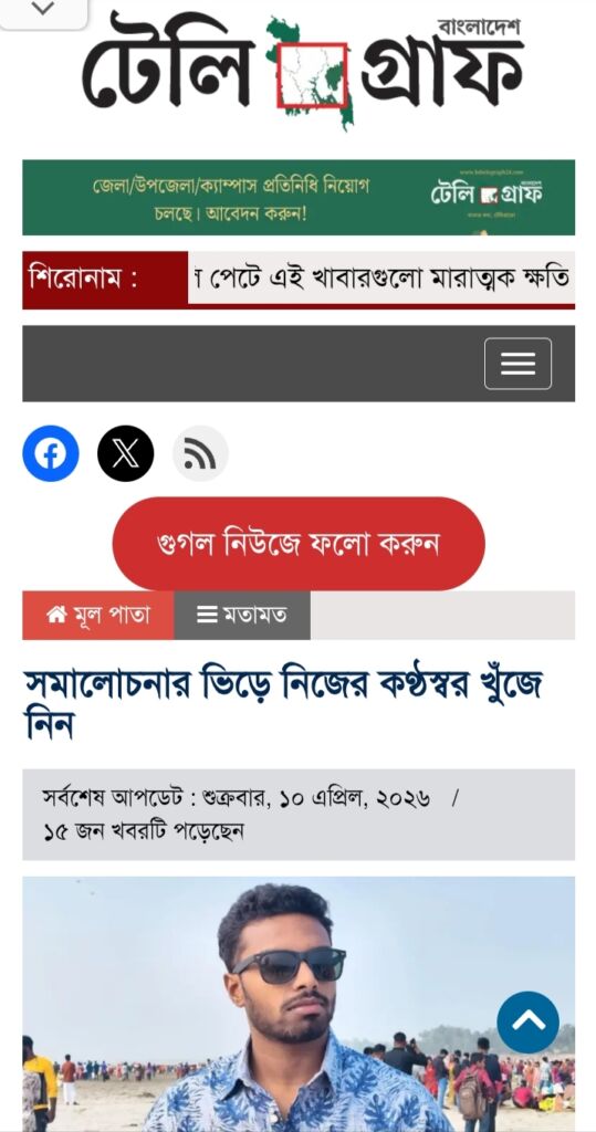 এই লেখাটি ১০ এপ্রিল ২০২৬ তারিখে টেলিগ্রাফ পত্রিকায় প্রকাশিত।