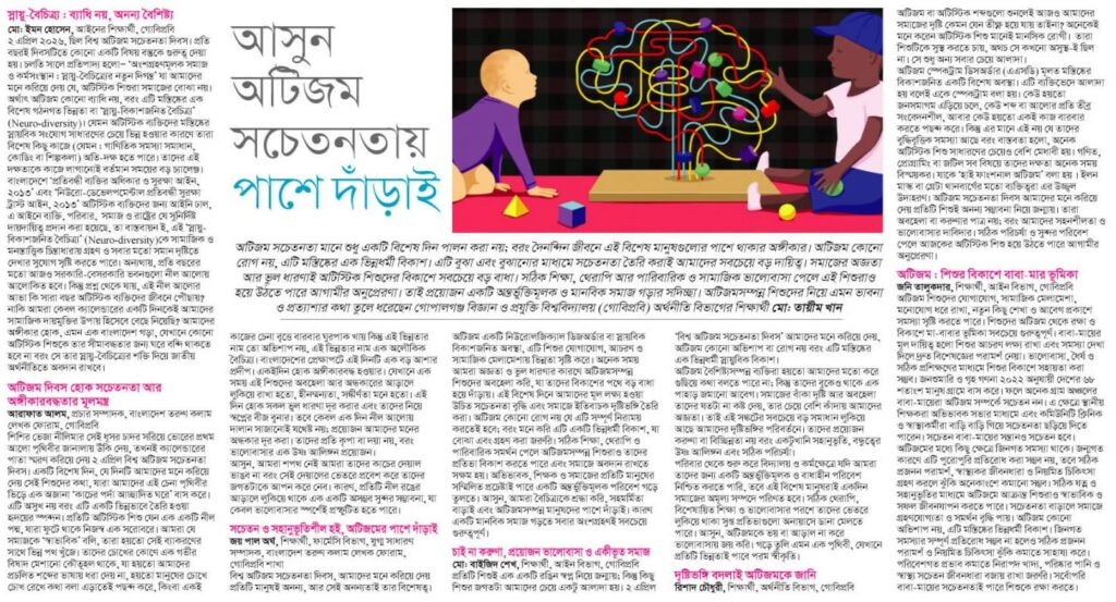 “সচেতন হই, সহানুভূতিশীল হই অটিজমের পাশে দাঁড়াই”
