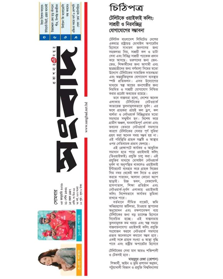 টেলিটকে ওয়াইফাই কলিং: সাশ্রয়ী ও নিরবচ্ছিন্ন যোগাযোগের সম্ভাবনা