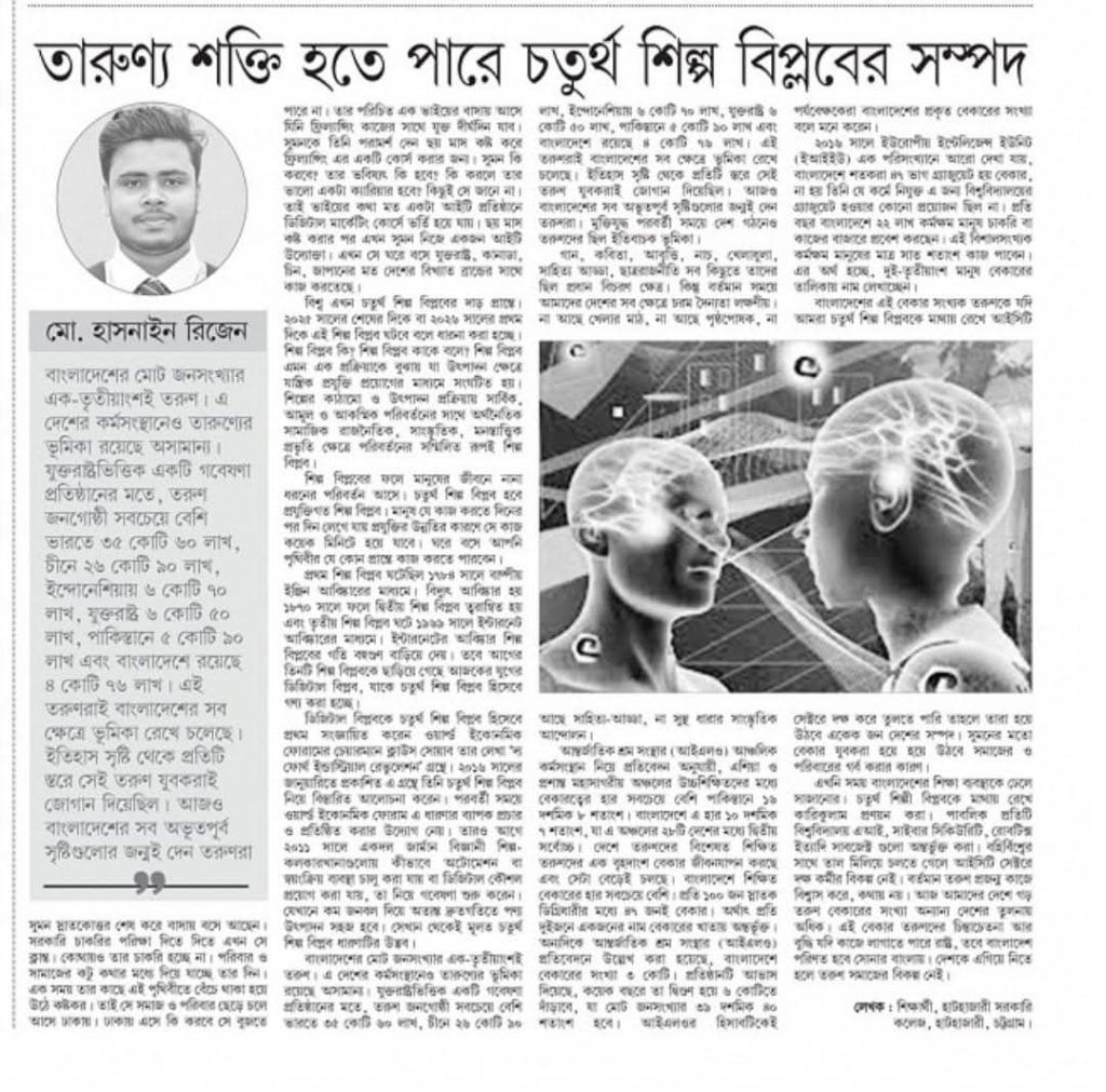 তারুণ্য শক্তি হতে পারে চতুর্থ শিল্প বিপ্লবের সম্পদ।