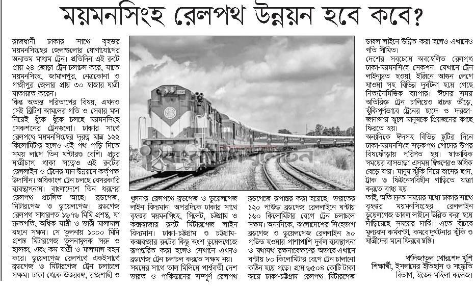 ময়মনসিংহ রেলপথ উন্নয়ন হবে কবে?