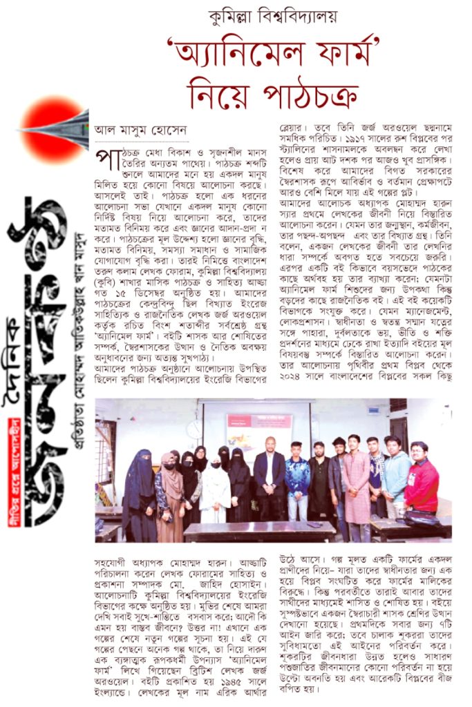 ‘অ্যানিমেল ফার্ম’ নিয়ে কুবি লেখক ফোরামের পাঠচক্র ও সমসাময়িক বিষয়ে আলোচনা