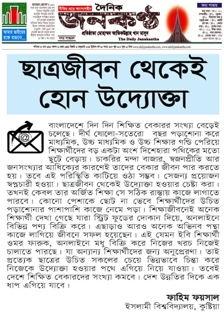 ছাত্রজীবন থেকেই হোন উদ্যোক্তা