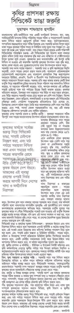 কৃষির প্রাণসত্তা রক্ষায় সিন্ডিকেট ভাঙা জরুরি