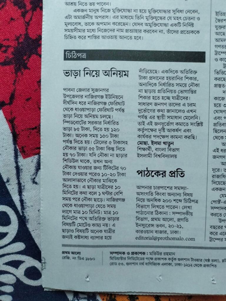 এই লেখাটি ২১ ডিসেম্বর ২০২৪ তারিখে প্রথম আলো পত্রিকায় প্রকাশিত।