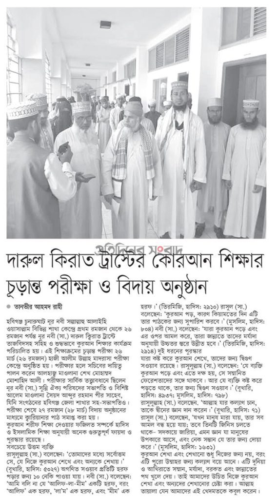 - দারুল ক্বিরাত ট্রাস্টের কুরআন শিক্ষার চূড়ান্ত পরীক্ষা ও বিদায় অনুষ্ঠান সম্পন্ন