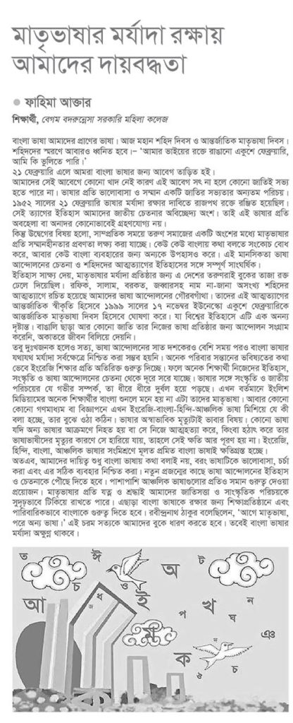 মাতৃভাষার মর্যাদা রক্ষায় আমাদের দায়বদ্ধতা