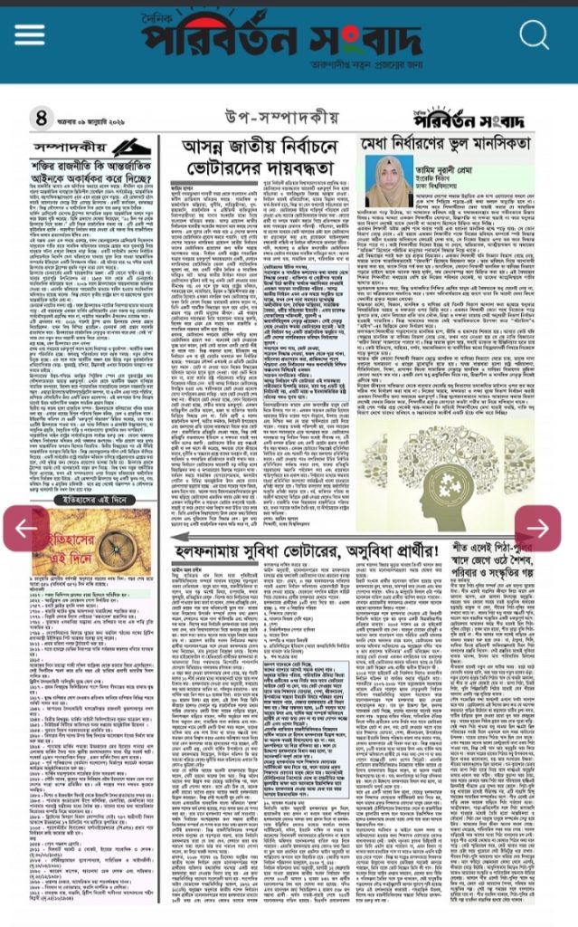 এই লেখাটি ৯ জানুয়ারি ২০২৬ তারিখে দৈনিক পরিবর্তন পত্রিকায় প্রকাশিত।