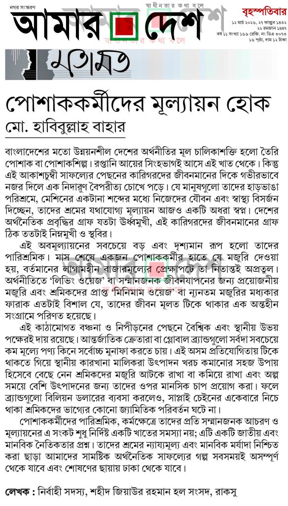 (প্রকাশিত-১২ই মার্চ,বৃহস্পতিবার-আমার দেশ পত্রিকা ২০২৬) এবং (The Financial Express এ প্রকাশি,১৪ই মার্চ)