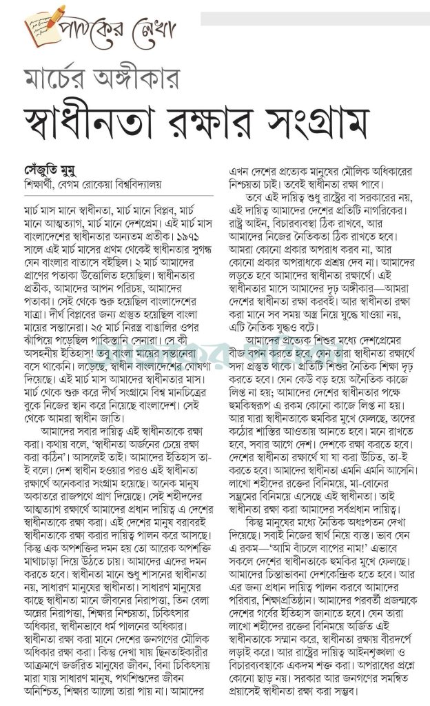 মার্চের অঙ্গীকার : স্বাধীনতা রক্ষার সংগ্রাম।