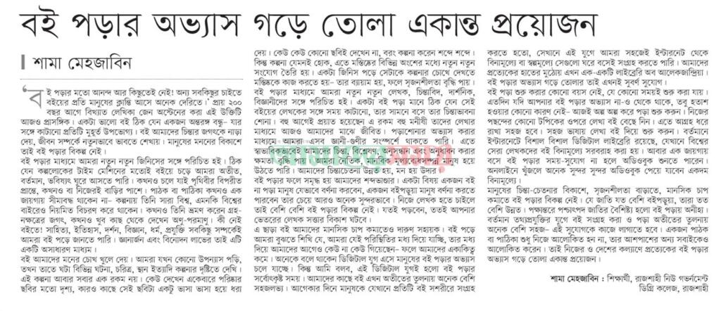 বই পড়ার অভ্যাস গড়ে তোলা একান্ত প্রয়োজন
