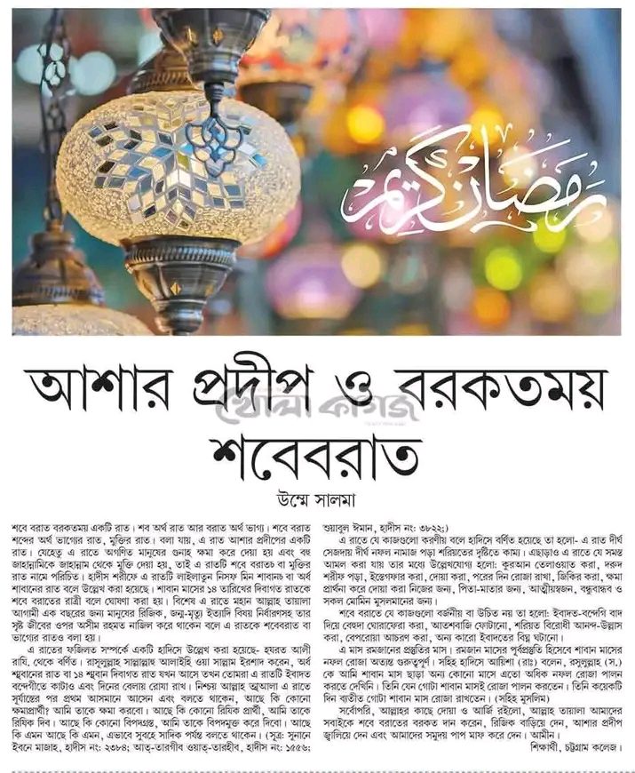 আশার প্রদীপ ও বরকতময় শবেবরাত