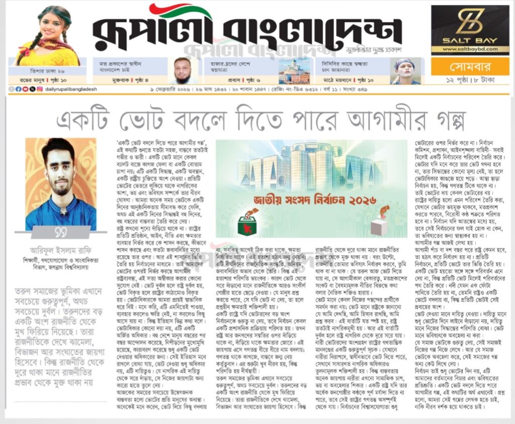 এই লেখাটি ৯ ফেব্রুয়ারি ২০২৬ তারিখে দৈনিক রূপালী বাংলাদেশ পত্রিকায় প্রকাশিত।