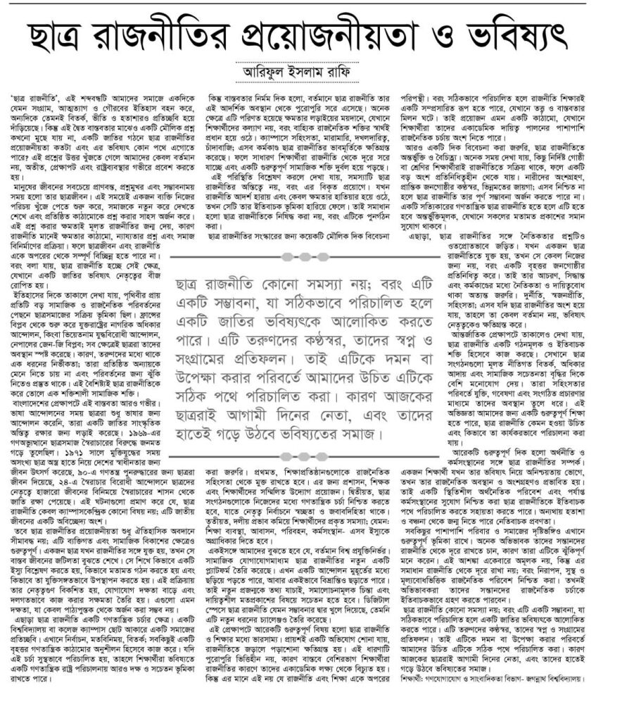 ছাত্র রাজনীতির প্রয়োজনীয়তা ও ভবিষ্যৎ