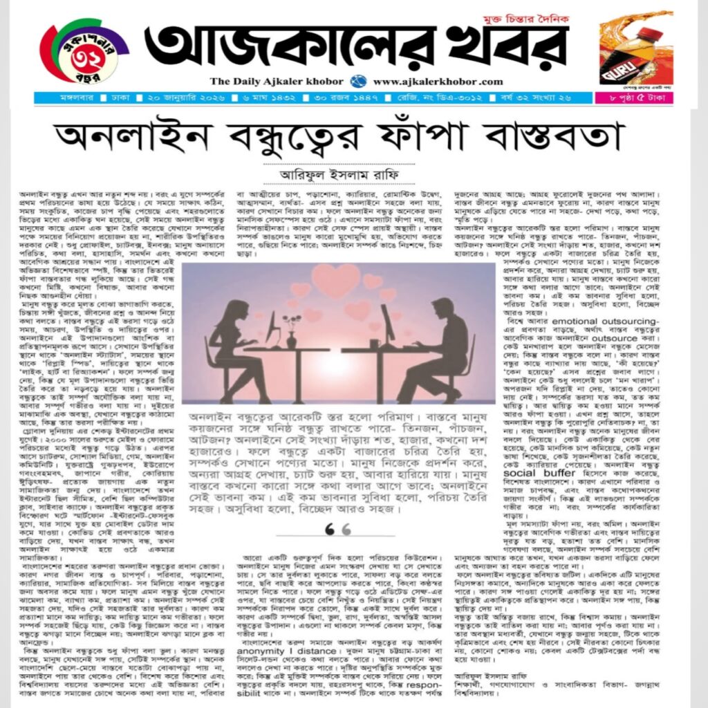 কিন্তু অনলাইন বন্ধুত্বকে শুধু ফাঁপা বলা ভুল। কারণ মনস্তত্ত্ব বলছে, মানুষ যেখানেই সঙ্গ পায়, সেটিই সম্পর্কের স্থান। অনেক বাংলাদেশি ছেলে-মেয়ে বাস্তবে যতোটা বোঝাপড়া পায় না, অনলাইনে পায় তার থেকেও বেশি। বিশেষ করে কিশোর এবং বিশ্ববিদ্যালয় বয়সের তরুণদের মধ্যে এই অভিজ্ঞতা বেশি। বাস্তব জগতে সমাজের চোখে অনেক কথা বলা যায় না, পরিবার বা আত্মীয়ের চাপ, পড়াশোনা, ক্যারিয়ার, রোমান্টিক উদ্বেগ, আত্মসম্মান, ব্যর্থতা- এসব প্রশ্ন অনলাইনে সহজে বলা যায়, কারণ সেখানে বিচার কম। ফলে অনলাইন বন্ধুত্ব অনেকের জন্য মানসিক সেফস্পেস হয়ে ওঠে। এখানে সমস্যাটা ফাঁপা নয়, বরং নিরাপত্তাহীনতা। কারণ সেই সেফ স্পেস প্রায়ই অস্থায়ী। বাস্তব সম্পর্ক ভাঙলেও মানুষ কারো মুখোমুখি হয়, অভিযোগ করতে পারে, গুছিয়ে নিতে পারে; অনলাইনে সম্পর্ক ভাঙে নিঃশব্দে, চিহ্ন ছাড়া।